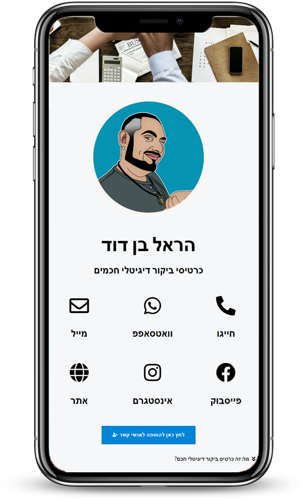 כרטיס ביקור דיגיטלי חכם הוא בעצם דף כרטיס המציג את כל פרטי הקשר של בית העסק שלך במקום אחד.